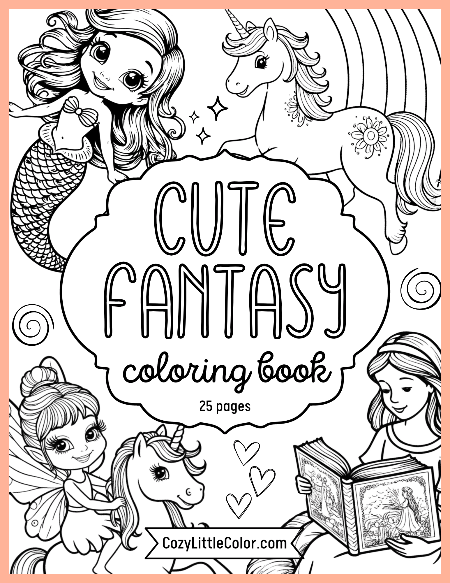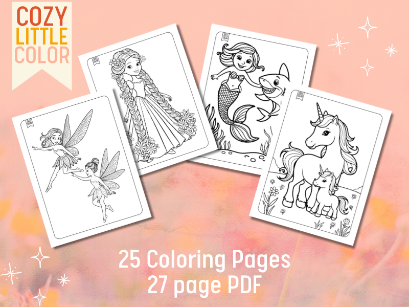 Enter a world of adorable fantasy with this coloring book full of princesses, fairies, unicorns, mermaids, and other magical elements! Grab your crayons, this book is perfect for young kids with large white spaces and cute illustrations.